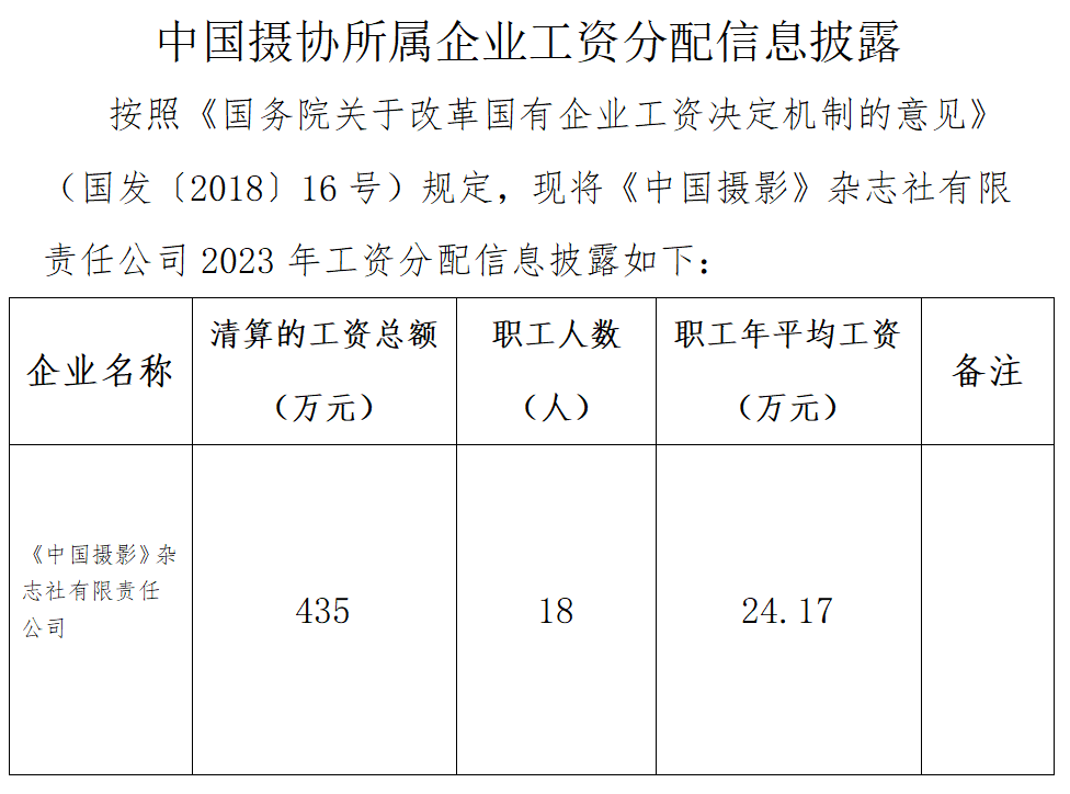 中国摄协所属企业工资分配信息披露