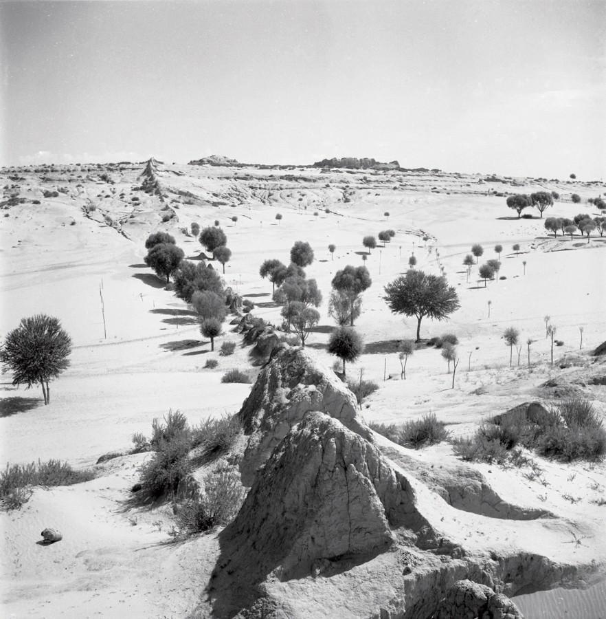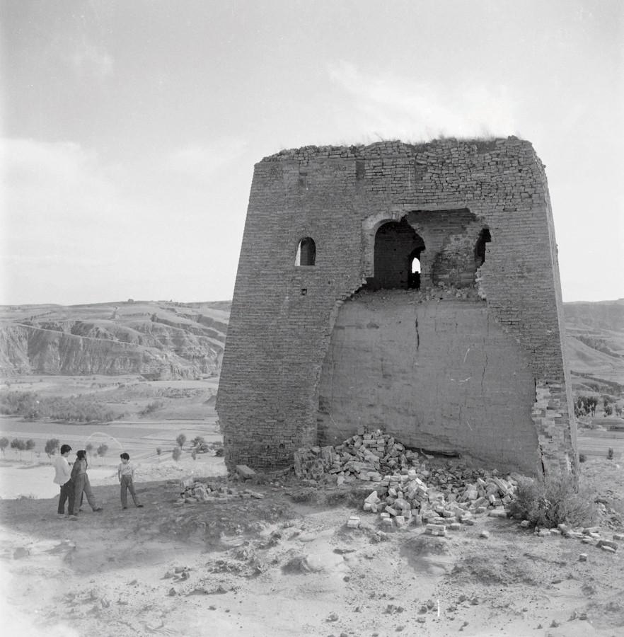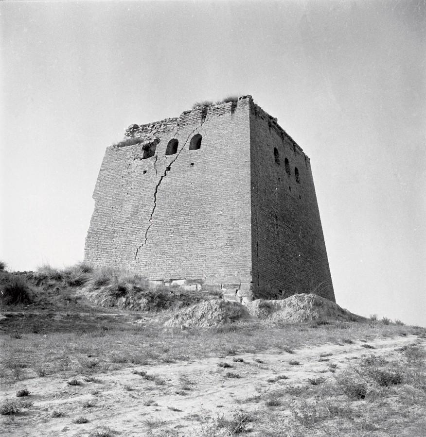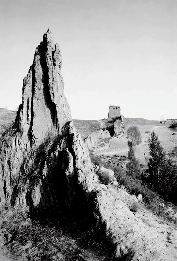 当年的影像资料如果用专业的摄影标准来看,保存得并不好(有意思的是,这些影像和其拍摄物长城一样,都面临着被拯救的命运),在那些积尘累累的塑料袋里,全是装订成册的考察资料,已被积年黄土脏污,几乎连纸袋口也封不住。其中很多彩色负片后来被省里的出版社直接用低质量扫描仪进行底片扫描出书,偏色严重,影像失真。在李生程多年的长城影像素材中,那些用120画幅记录的黑白影像是最耐看的。仔细浏览这些烽火台的照片,很多都有不同侧面和角度的“肖像”,按理说这些出于考察和记录性质的影像,自身的资料属性和素材属性更明确,但是30年后的今天,我们再次仔细端详这些照片,竟然比那种拍摄时就抱着明确“艺术追求”的影像更加直指人心。