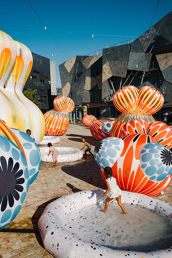 夏日戏水,墨尔本联邦广场,2022 年1 月25 日 张悦时