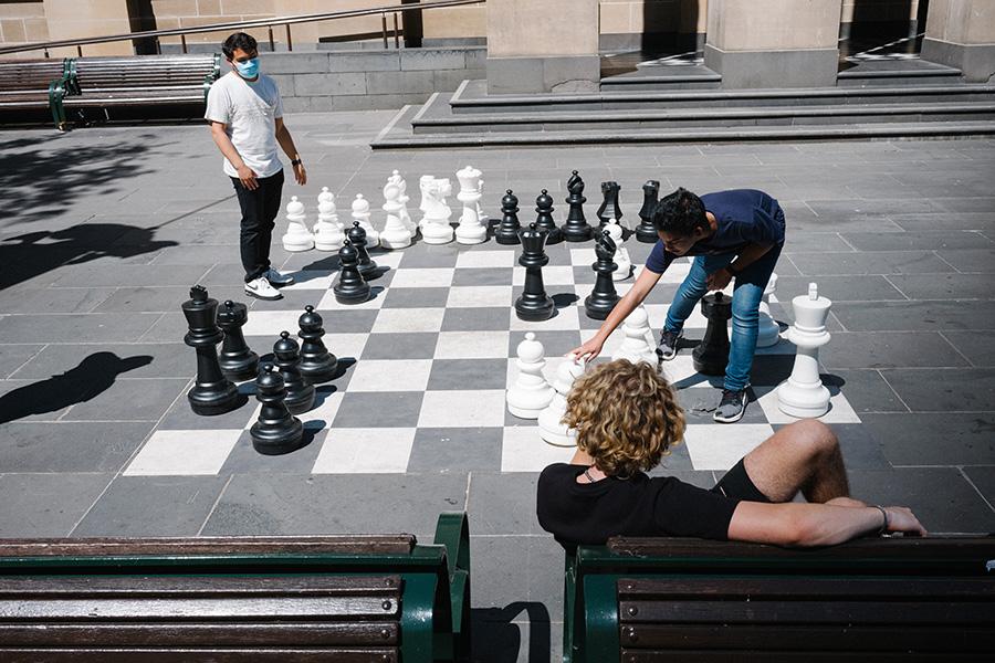 下国际象棋的年轻人,墨尔本维多利亚州立图书馆,2021年12月24日 张悦时