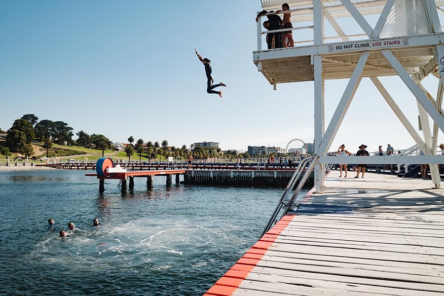 在墨尔本的街头,我看到家人朋友的聚会,小朋友戴着圣诞头饰嬉笑在街头,相爱的人在别人的见证下举办婚礼,年轻人一个一个从栈桥跳到水里……人们脸上都洋溢着的笑容就好像墨尔本初夏 的太阳一样炽热。我时常被街上的人的情绪感染着,默默拿起相机记录下这一切。