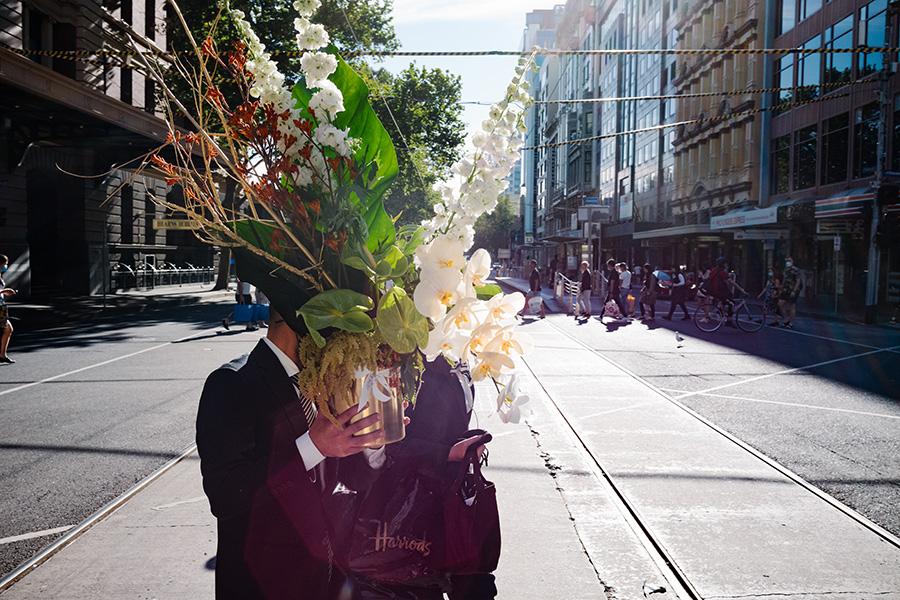 举着鲜花的礼宾人员, 墨尔本,2021年12月24日 张悦时
