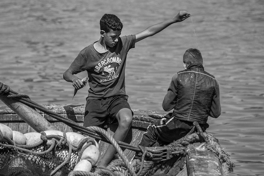 用手线钓鱼的少年,索维拉鱼港,2018年6月25日  陈正军
