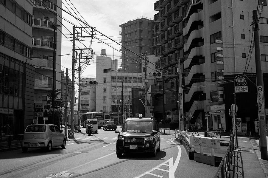 中野区内⼤久保通上的出租⻋与两旁建筑,2021年 杜立山