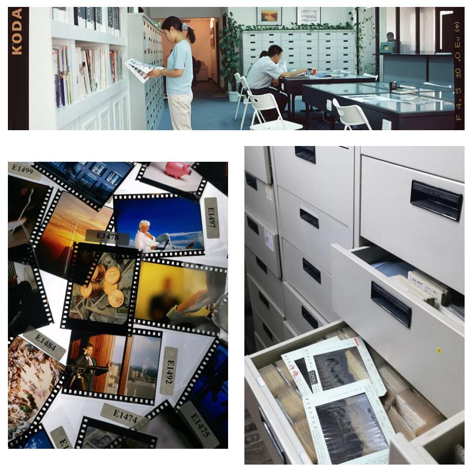 1990年代初的“景象”图片库,灯台、图册、底片柜是图库的标配