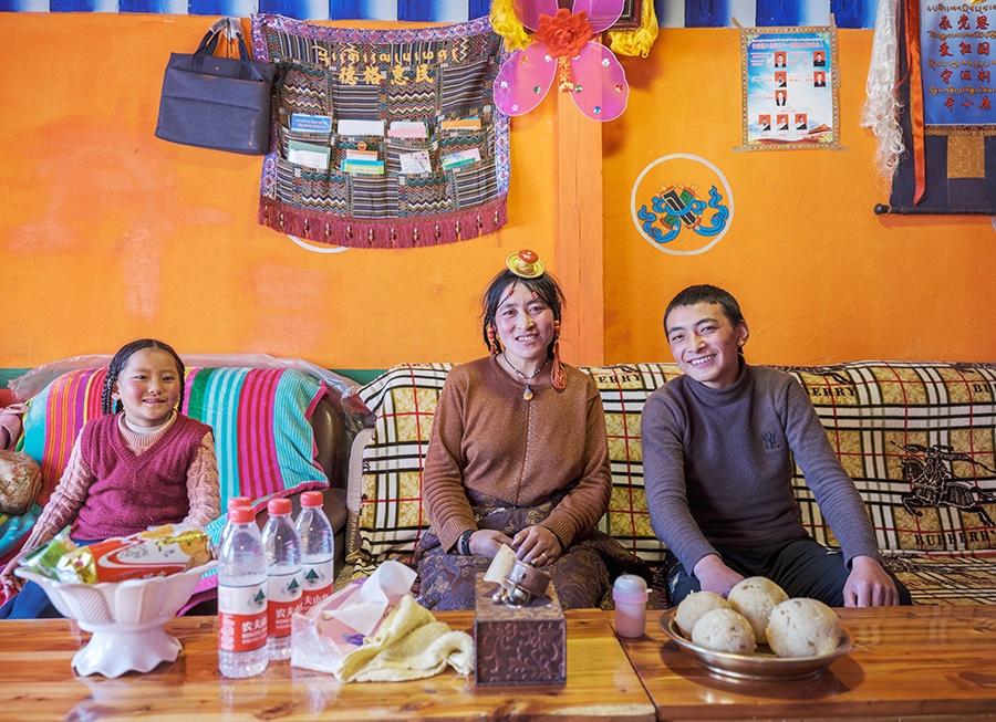 母亲和两个儿女,她家在镇政府的扶贫帮扶下,摘掉了贫困户的帽子 。2019年12月7日,德格