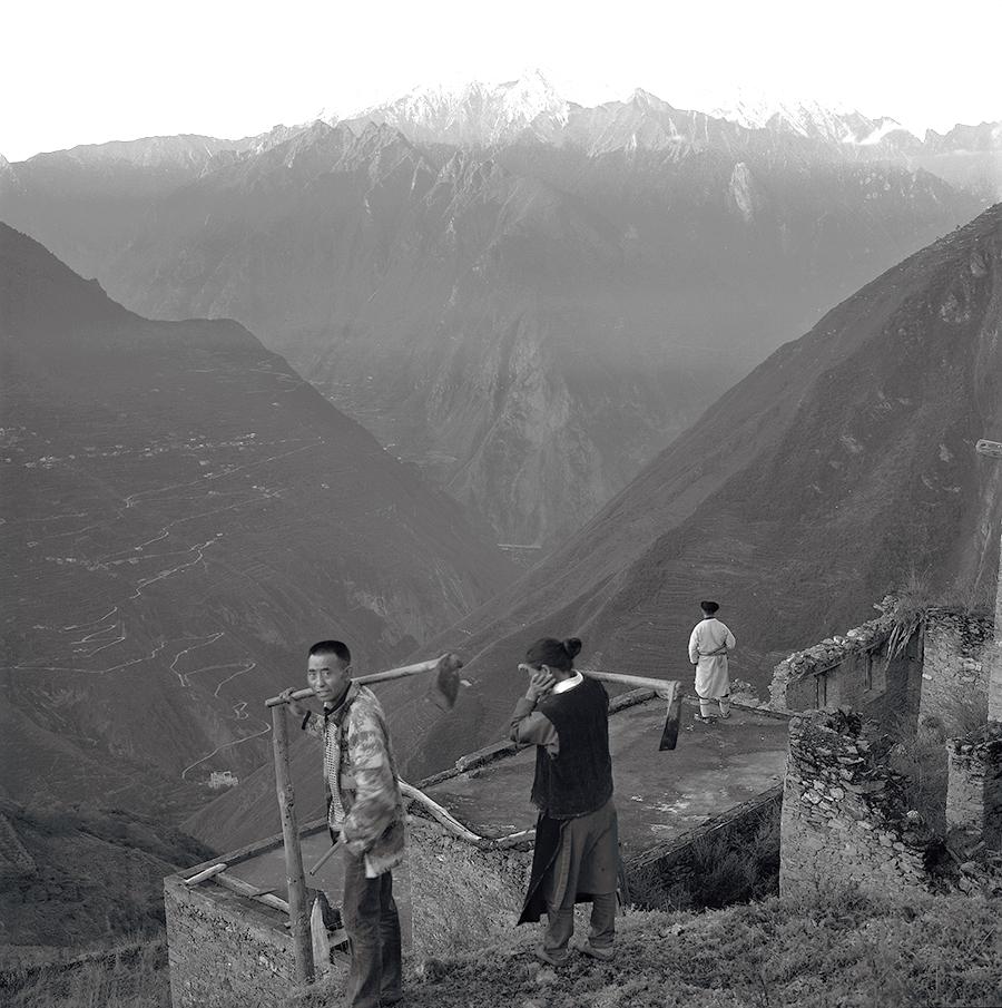 在之后的10年里,严木初、华尔丹两位藏族摄影助理,先后随我一同见证,一同以图片、文字和纪实电影三种语言并行的方式,记录了夕格、直台两个羌寨的700多名羌人耕种劳作的生活状态,和迁徙与回归的悲壮历程。这10年里,我在汶川县龙溪、雁门、绵虒,理县西山、蒲溪,茂县曲谷、三龙、围城、雅都、土门、松坪沟,松潘县小姓、镇坪以及北川县青片……这些深谷高山间的羌寨静静地拍摄着。这期间,山下的城镇和道路很快得以重建,高山之上的古老村寨也纷纷整修或搬迁。灾后重建的速度和成果,让所有的人欢欣鼓舞;但看见一栋栋深具岁月质地的房屋被遗弃或拆毁,我倍感失落。虽然,我不能振臂一呼,让那些存储无数古老信息的古木老墙无人敢动。虽然,我不能苦口婆心地去劝说大家回归田园牧歌的生活,但我可以用属于自己的语言向这个世界平静讲述:2008年5月12日的那场大地震前后,在岷江上游高山羌人的生命里,还流淌着远古歌谣的余音;在他们的日常生活当中,还保存着一些与自然、与传统血脉相连的四季风俗。