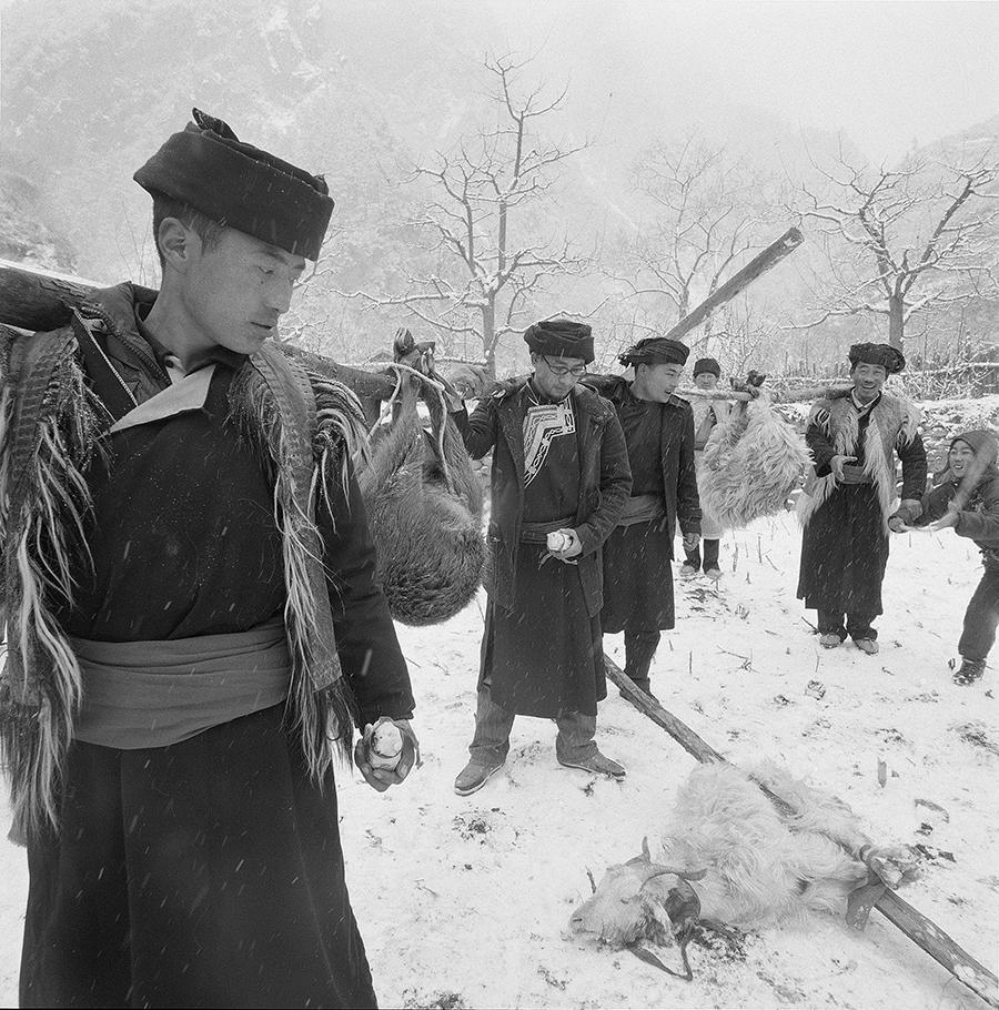 我在10年间所拍的几千张图片中选出了一百多幅,用来编辑十二开精装的画册。这些图片都是用哈苏503cw相机、依尔福120黑白负片拍摄的。图片有意回避了与电影画面相同、相近的画面;文字与对应图片息息相关,却又着重于图片与电影难以呈现的历史场景、人物心理、人物对话。全书分“迁徙与回归”“羌在深谷高山”“最后的释比”三个部分。“迁徙与回归”讲述以释比贵生等夕格羌人,离开世代居住的山寨迁往他乡,九年后回归故乡的历程;“羌在深谷高山” 记录了岷江上游、湔江上游高山之上的羌族村民,经历大灾之后耕种劳作、守望家园的日常生活;“最后的释比”纪述了大地震之后,我能询访到的20多位羌文化传承者—释比,他们的迷茫与憧憬,失落与坚守。