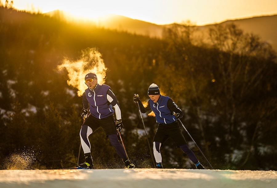 2022年2月2日,两名芬兰选手在北京冬奥会(张家口赛区) 男子冬季两项比赛前热身。 魏征