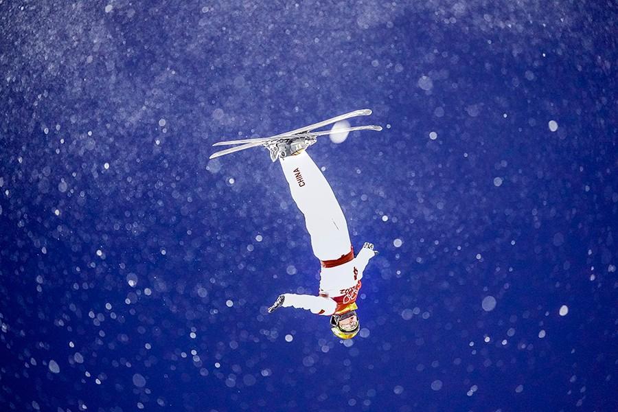 2022年2月16日,中国选手齐广璞在比赛前热身。当晚,他在北京冬奥会(张家口赛区)自由式滑雪男子空中技巧比赛中获得金牌。 魏征