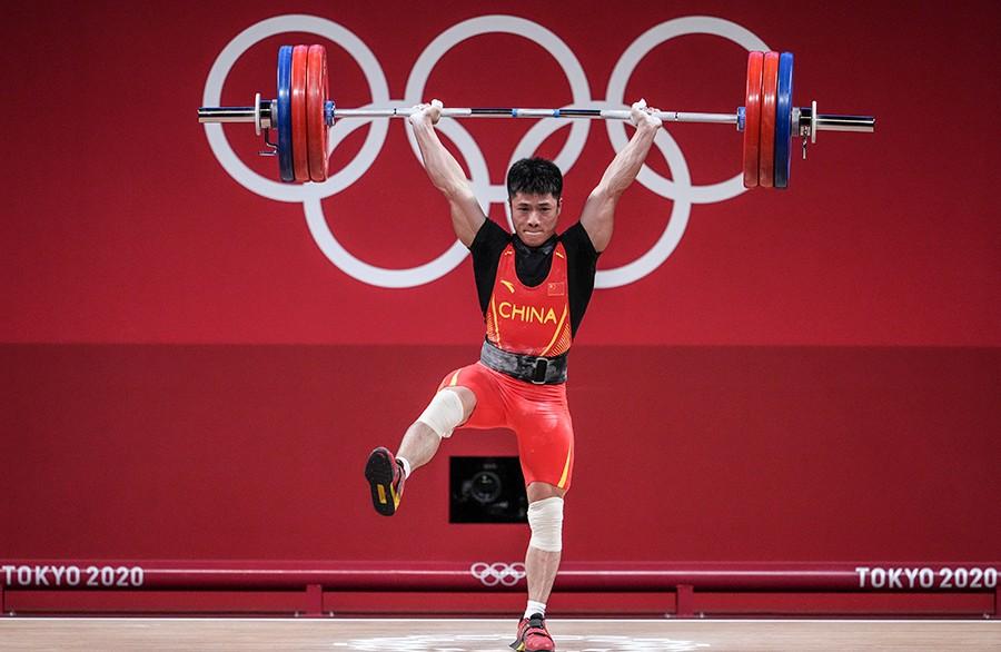 2021年7月25日,东京奥运会举重男 子61公斤级决赛在日本东京国际论坛大楼举行。中国选手李发彬以总成绩313公斤获得冠军,同时打破挺举和总成绩奥运纪录。图为李发彬在比赛中“金鸡 独立”。 魏征