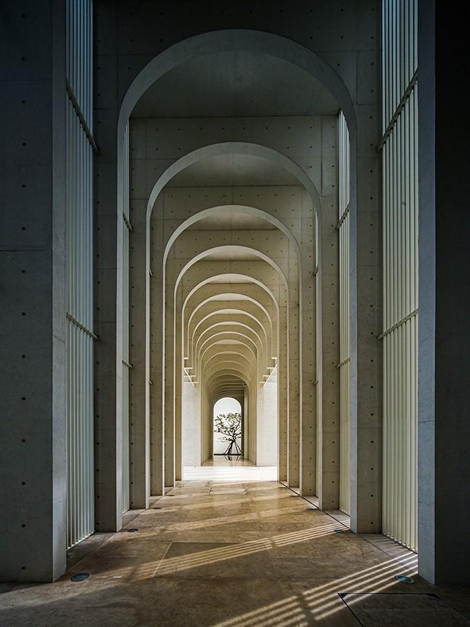 建筑摄影犹如乐谱把三维建筑记录在图像中,影像的纬线可以看成是时间和旋律进行的痕迹,影像的经线则呈现出音的高低和动态走向,摄影画面中的点、线、面跟音乐中的音符、旋律、和声是相互关联的,声谱和光谱也是密切结合的,形成不同的调式和色彩。