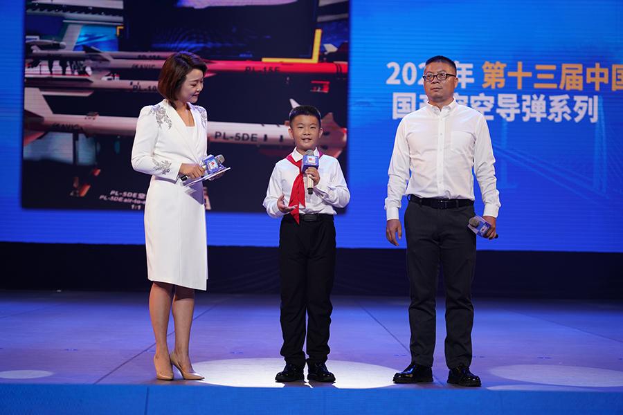 曾多次参观中国航展的父子张峰和张骁涵在现场分享他们的观展经历  王江 摄