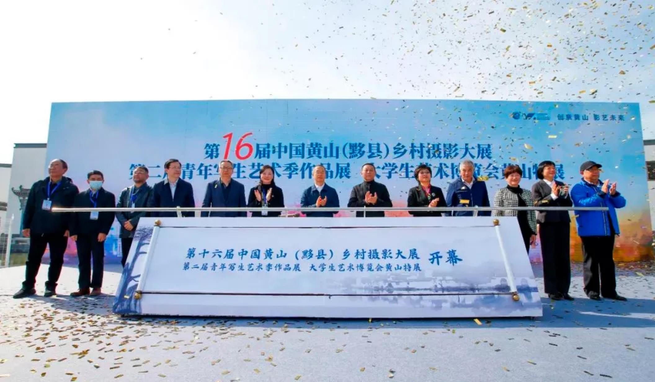 ▲黄山市市委副书记、宣传部长范荣晖宣布活动开幕,视觉摄影家协会副主席线云强,安徽省文化和旅游厅副厅长王云波,中共黄山市市委常委、黟县县委书记叶建强,黄山市人大副主任叶长荫,副市长程红,本报社长赵迎新等和来自摄影界、美术界、各艺术院校、艺术家代表、媒体代表等共同出席大展开幕仪式。