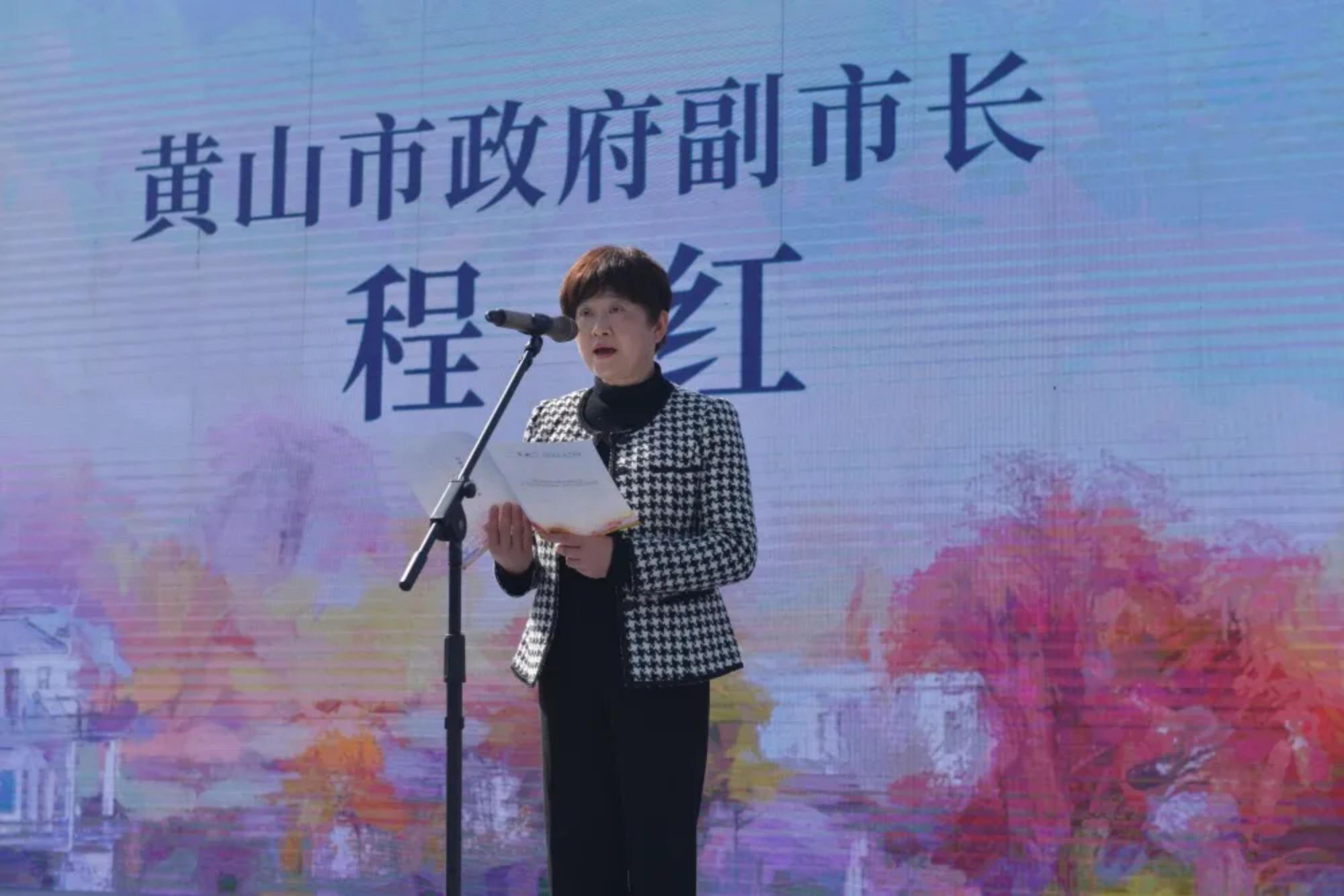 ▲程红在致辞时介绍,黄山整个城市就是一座可以随手触摸、亲近对话、没有屋顶的博物馆。今年联袂青年写生艺术季,激发创新魅力,不断打通黄山走向世界的文化条形码。她祝愿各位摄影家、艺术家在这灵动之地迸发激情,创作出优秀作品,使大展成为全民性和专业性兼具的艺术盛宴。