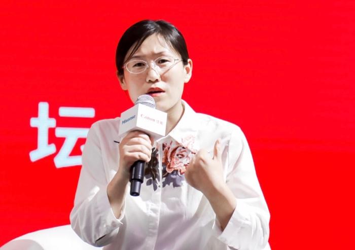 佳能(中国)影像产品信息本部副总经理栗开宇(上)、海信视像科技股份有限公司显示专家赵彩霞(下)发言